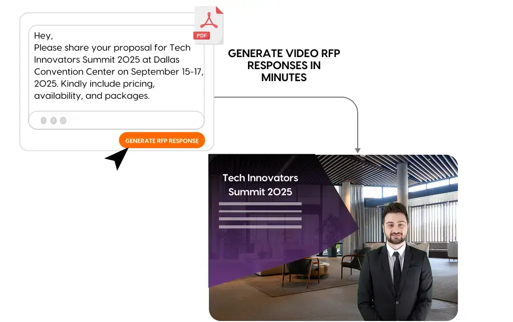 AI understands event requirements and automatically creates the video RFP proposals & video virtual tour